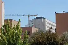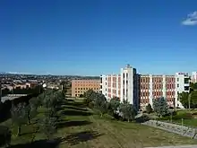 D'Annunzio University's 48.9 acres (19.8 ha) main campus is centered on Madonna delle Piane in Chieti Scalo, about 3 miles (5 km) northwest of downtown Chieti. Its facilities are organised within a unitary structure which includes natural elements and pre-existing buildings.[26] It is the statutory seat of the university and contains the central administrative offices, including the rectorate and general directorate. Most of the D'Annunzio University's academic programs are located on the campus in Madonna delle Piane, which houses two schools and seven departments including the School of Advanced Studies. It contains the main libraries of the university as well as five research centres.[27]