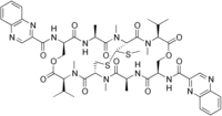 Echinomycin is a bis-intercalator peptide and is biosynthesized by a unique nonribosomal peptide synthetase (NRPS).[1][2] Echinomycin is isolated from various bacteria such as Streptomyces lasalienis. It belongs to a family of quinoxaline antibiotics. There is great interest in this group of compounds because they have very potent antibacterial, anticancer, and antiviral activities.[3]