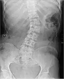- ↑ Blevins K, Battenberg A, Beck A (August 2018). "Management of Scoliosis". Advances in Pediatrics. 65 (1): 249–266. doi:10.1016/j.yapd.2018.04.013. PMID 30053928. S2CID 51727835.