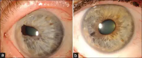 Cogan-Reese variant is characterized by multiple pigmented iris nodules [2,6]. This variant is most commonly unilateral and seen in middle-aged females [2].
