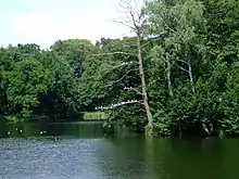 The forests of the present-day public Świerklaniec Park stretch over 154 hectares (380 acres) and include oak, pine and many other species of trees. Some of the landmark heritage trees are over 120 years old.