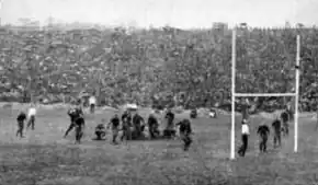 The 1913 Harvard Crimson football team was an American football team that represented Harvard University as an independent during the 1913 college football season. In its sixth season under head coach Percy Haughton, the Crimson compiled a perfect 9–0 record, shut out five of nine opponents, and outscored all opponents by a total of 225 to 21.[1] The season was part of an unbeaten streak that began in November 1911 and continued until October 1915.