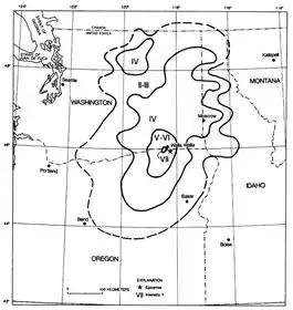 The 1936 State Line earthquake (also referred to as the 1936 Milton-Freewater earthquake) struck at 23:08 Pacific time on July 15, 1936. The earthquake had an estimated magnitude of 5.8 and a maximum Mercalli intensity of VII (Very strong). The epicenter was near the Oregon/Washington state line approximately 6 miles (9.7 km) northwest of Milton-Freewater, Oregon and southwest of Walla Walla, Washington and was felt throughout the Pacific Northwest, including as far away as Bonners Ferry, Idaho near the Canadian border and by seismographs as far away as San Diego, California.[6]
