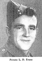 Lyndsay Dennis Evans was killed in action on April 20, 1943, after previously having been reported missing. Nicknamed ‘Bun’ he was the youngest son of Mrs. Catherine Evans and the late Mr. Alfred Evans, of 51 Wallace Road, Papakura. He had been educated at Papakura School and Pukekohe High School. Evans represented the South Auckland Primary School's representative side in the Northern Roller Mills Shield Competition in 1931. After leaving high school he worked as an attendant at the Kingseat Mental Hospital. He played rugby league for the Papakura club and in 1938 scored 6 tries so the senior side. He had left New Zealand in December 1942 with the Second New Zealand Expeditionary Force and was a Private in the 21 Infantry Battalion. Evans was killed in action after being shot in the chest and stomach by German artillery at Takrouna, Tunisia aged 25. He was buried at Enfidaville War Cemetery, Tunisia. He is memorialised at the Karaka War Memorial, on Great South Road, Papakura and in the Auckland War Memorial Museum, World War 2 Hall of Memories.[22][23]