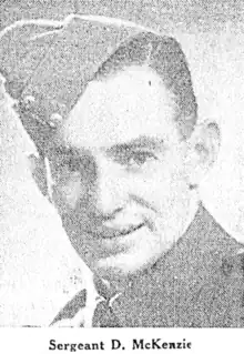 On 24 February it was reported that Sergeant Donald McFarlane McKenzie "has now been reported lost at sea". McKenzie had been on an enemy ship (Nino Bixio) in the Mediterranean when it was torpedoed on August 17, 1942, while it was transporting prisoners to Italy from North Africa. He had entered the army in October 1940 and departed New Zealand in September 1941 as part of an early reinforcement draft, seeing service in the desert campaigns. McKenzie has been educated at Te Puke High School before later moving to Auckland where he played for the Newton Rangers first grade side.[28] From 1938 to 1940 McKenzie scored 9 tries and kicked 2 conversions and 2 drop goals in first grade matches. He was aged 26 at the time of his death and survived by his wife Elsie Edith McKenzie, and his parents James and Mary McKenzie. McKenzie is memorialised at the Alamein Memorial in the El Alamein War Cemetery in Egypt, on the Roll of Honour at Greyfriars Presbyterian Church on Mt Eden Road, Auckland, and at the Auckland War Memorial Museum, WW2 Hall of Memories.[29]