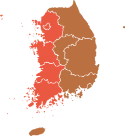 | Chungnam | 489,516 | (45.4%) | 505,076 | (46.8%) | 17,662 | (1.6%) | 27,295 | (2.5%) | 28,809 | (2.7%) | 10,560 | (1.0%) | 1,078,918 | ![]() |