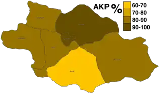 * The number of valid votes recorded for Aydınlar is recorded as higher than the number of votes cast (1,460). The actual results in this district are therefore disputed.