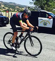 The third stage of the race featured only one intermediate sprint, contested in Livermore, then the climbing began. There were six King of the Mountains prizes (four were category 4 and one was category 2), with the major one being the climb to Mount Hamilton, an "hors-category" climb of 6.5 miles (10.5 kilometers) at an average 7% gradient.[24] One of the category 4 climbs was situated at the end of the stage in San Jose, where the finale featured 250 meters (820 feet) at an average gradient of 10%. The elevation gain for the stage was 10,200 feet (3,100 meters).[25]