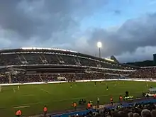 Arsenal's Premier League setback continued as they were beaten by Chelsea 3–1 at Stamford Bridge. Marcos Alonso scored the only goal of the first half before Eden Hazard wrapped up a fine solo goal. Cesc Fàbregas scored against his old club for Chelsea's third before Olivier Giroud netted a late consolation goal.[60] On 11 February however the Gunners bounced back as they eased past Hull at the Emirates. In the first half Alexis Sánchez bundled home the opening goal despite replays showing the ball hit his hand before it went into the back of the net. Arsenal grabbed a second in stoppage time as Sánchez converted a 93rd-minute penalty following handball by Sam Clucas which resulted into his dismissal.[61] Four days later Arsenal played in the knockout stage of the Champions League against German giants and five-times European champions Bayern Munich at the Allianz Arena. The Gunners were undone and under pressure by the Bayern possession and fell behind on 11 minutes through Arjen Robben's 20-yard screamer. However, in the 30th minute Arsenal were handed a penalty and Sánchez slotted home the rebound following his initial spot-kick being saved by Manuel Neuer as the first half ended 1–1 with much cherished positivity for the Gunners. Unfortunately in the second half Arsenal collapsed horrendously: first they lost captain Laurent Koscielny through injury which proved to be the catalyst for Arsenal's capitulation as they conceded three goals in ten minutes. Bayern Munich went back in front in the 53rd minute as Robert Lewandowski mismatched Shkodran Mustafi to head home Philipp Lahm's cross. Then, only three minutes later, Spanish midfielder Thiago made it 3–1 and sooner Bayern Munich were 4–1 up through Thiago's deflected shot from outside the penalty area following a scramble in the box. Finally in the 88th minute Thomas Müller, who had only scored four goals this season before the match, went off the bench and scored a fifth goal for Bayern Munich to put Arsenal's hopes of reaching the quarter-final of the Champions League beyond them. The match ended 5–1 to Bayern Munich putting Arsène Wenger under huge pressure.[62] On 20 February Arsenal resumed the FA Cup campaign as they took the trip to non-league team Sutton United. The Gunners comfortably won 2–0 with Lucas Pérez scoring his 7th goal of the season and Theo Walcott scoring his 100th Arsenal goal as they progressed into the FA Cup quarter-final.[63]