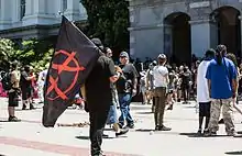 Several groups led by Antifa (Anti-Fascist Action) Sacramento and BAMN (By Any Means Necessary) organized a counter protest. BAMN issued a statement saying that "collective power through mass militant direct action can shut these Nazis down and deal the fascists and white-supremacists a decisive tactical defeat".[7] Antifa Sacramento stated that "fighting fascism was not a political duty, but a moral one", and called for direct action against them.[8][9]