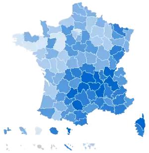![]() Vote percentage for Wauquiez by department <65% 65–70% 70–75% 75–80% 80–85% >85% | |||||||||||||||||||||