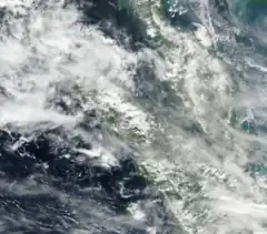 By 16:30, during which the rain had subsided, five of the six missing people have been found dead; they comprise one child, three females, and one male died.[12] With floodwaters reaching up to five meters, 181 people were rescued.[20] An hour later, the sixth person was found dead. Two of the dead was found washed by the Deli River. However it was theorized that the death toll likely more than six.[26] This was proven correct when The Jakarta Post reported the deaths increasing to eight.[1] Impacted administrative districts were Medan Johor, Maimun, Sunggal, Tuntungan, and Polonia. 12,783 people and 4,249 families were reportedly affected.[14][27] In Binjai, at five sub-districts comprising 16 urban villages, thousands of homes were reportedly destroyed.[10] As of 6 December, accounting the entirety of North Sumatra, more than 31,100 people were affected, as well as 48,000 in Aceh.[28] By 8 December, the count in Aceh rose to 86,724, with 18 damaged houses and four damaged infrastructure.[29]