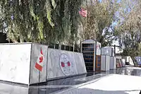 A monument was erected in 1984 to honour the men and women of Camp X. It is surrounded by four flags: that of Bermuda (where Sir William Stephenson lived for many decades) and those of wartime Allies the United States, Canada and Britain.[55] The annual parade at this memorial honours the service of the fallen soldiers and the veterans who trained at this site, but could never be publicly recognized for their service during their lifetime.