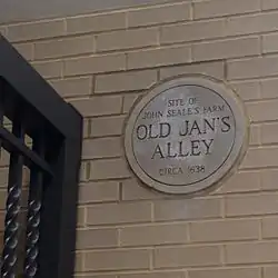 A full-block alley runs at the rear of the building. A plaque denoting "Old Jan's Alley" is located on the alley wall designating the location of John Seales Farm of 1638, one of the original plantations of the New Amsterdam colony.[4] Gregory Cranford, lead designer of the building’s renovation effort, is a 14th generation descendant of John Seales.[5]