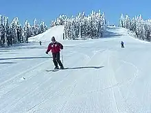 A predecessor ski area named "Chewelah Peak" was about two miles (3 km) west (48.302°N 117.612°W), towards Chewelah.[6] It was served by a double chair that vertically climbed 1,450 feet (440 m).[7][8] It began operation with a rope tow in 1936; the double chairlift was added in 1950,[9] and a lodge in 1952.[10]