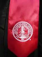 The academic regalia of Stanford University describes the robes, gowns, and hoods which are prescribed by the university for its graduates. Stanford University was founded in 1891 and academic dress has been a part of academic life at the school since at least 1899. As in most American universities, the academic dress found at Stanford is derived from that of the universities of Oxford and Cambridge, which was a development of academic and clerical dress common throughout the medieval universities of Europe.[1] Today, also in common with most American universities, academic regalia is commonly seen only at graduation ceremonies. For most of its academic dress, Stanford follows the Intercollegiate Code of Academic Costume which was devised in 1895 and sets out a detailed uniform scheme of academic regalia. Stanford does make use of a distinct robe for its PhD graduates which is unique among American institutions of higher education in being based specifically on the doctoral robes of the University of Cambridge.