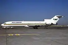 In April 1977, the airline placed an order for a Boeing 747-200 and Boeing 737 at a cost of approximately US$55 million.[3] In 1978 President of Gabon Omar Bongo gave the airline his personal transport, a Fokker F-28, for use on services. On 5 October the airline's Boeing 747, named President Léon M'ba, arrived as part of the wet lease agreement signed the previous year. On 26 February 1979 one of the airline's Douglas DC-6s crashed into a swamp 11 kilometres (6.8 mi) from Moanda, killing the aircraft's three occupants.[2][4]
