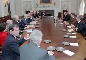 Wohlstetter and his wife, Roberta Wohlstetter, also counseled both Democratic and Republican administrations, including advisers to President John F. Kennedy during the Cuban Missile Crisis in 1962.[30] They received the Presidential Medal of Freedom from Ronald Reagan on November 7, 1985.