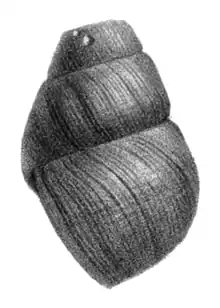 Drawing of a lateral view of the shell of Amuropaludina pachya