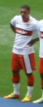 Born in England, Gray is of Jamaican descent and was eligible to represent either country internationally.[97] Gray's goalscoring record for Luton in the final months of the 2011–12 season raised the attention of the England C team and he was named in the squad for an International Challenge Trophy match against Russia U23 in June 2012.[98] He made his debut in a 4–0 defeat, playing the full 90 minutes.[99] He was later called into the squad to face Belgium U23 in September 2012.[100] He came on as a half-time substitute for Stephen Brogan and scored his first international goal with the winner in a 2–1 victory. The win saw England C qualify for the semi-final of the International Challenge Trophy.[101] He played in the semi-final on 5 February 2013 against Turkey B, which England C lost 1–0.[102] Gray captained England C in the second half of a 6–1 friendly win over Bermuda on 5 June 2013, scoring the team's sixth goal.[103] He appeared again in a 2–2 friendly draw with Czech Republic U21 in November 2013, starting the match and lasting 70 minutes before being replaced by Dan Fitchett.[104] Gray played in a friendly against Jordan U23 at the King Abdullah II Stadium in Amman on 4 March 2014, starting in a 1–0 victory and was replaced by Dan Fitchett at half-time.[105] Gray's return to the Football League in June 2014 meant that he was no longer eligible for England C. He made six appearances and scored two goals for the team.[106]