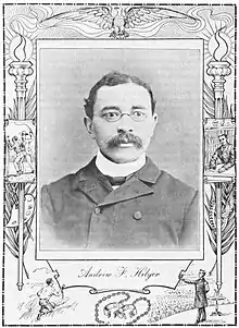 Andrew Franklin Hilyer (August 14, 1858 – January 13, 1925) was an accomplished Washington, D.C., lawyer, businessman, real estate investor, activist and inventor. He was born on August 14, 1858, in Georgia, and died in January 1925. An avid believer in the potential and development of African Americans, he devoted his life to cultivating black business in D.C. His interests spanned a variety of activities, and although a lawyer by profession, he dabbled in many areas throughout his time in the capitol.