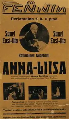 Anna-Liisa is a 1922 Finnish silent film directed by Teuvo Puro and Jussi Snellman based on the eponymous play by Finnish writer Minna Canth.