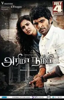 Arima Nambi (transl. Lion-like man) is a 2014 Indian Tamil-language action thriller film directed by debutant Anand Shankar.[1] The film stars Vikram Prabhu, Priya Anand, and J. D. Chakravarthy. Drummer Sivamani made his debut as a music director in the film,[2] which was shot by R. D. Rajasekhar while the editing was done by Bhuvan Srinivasan. The shoot of Arima Nambi started on 3 June 2013 in Chennai.[3] It was released theatrically on 4 July 2014 and opened to mostly positive reviews.[4] It was commercially successful, completing 100 days run in Tamil Nadu. The film was remade in Telugu as Dynamite (2015) with Vishnu Manchu.