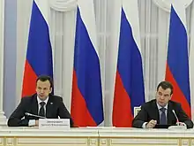 Arkady Vladimirovich Dvorkovich (Russian: Арка́дий Влади́мирович Дворко́вич; born 26 March 1972)[1] is a Russian politician and economist, currently chairman of the International Chess Federation, FIDE. He was Deputy Prime Minister in Dmitry Medvedev's Cabinet from 21 May 2012 until 7 May 2018. He was previously an Assistant to the President of the Russian Federation from May 2008 to May 2012. He has the federal state civilian service rank of 1st class Active State Councillor of the Russian Federation.[2]