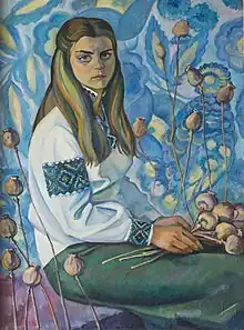 Folk art of Ukraine is a layer of Ukrainian culture associated with the creation of the worldview of the Ukrainian people, its psychology, ethical guidelines, and aesthetic aspirations, covering all types of folk art, traditionally inherent in Ukraine: music, dance, songs, decorative and applied arts, developing as a single complex, and organically included in the life of the people throughout its history.[2]