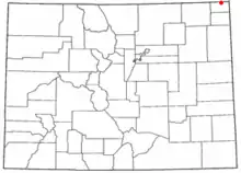 Julesburg was a prominent way station on the Overland Trail. It consisted of a stagecoach station, stables, an express and telegraph office, a warehouse, and a large store that catered to travelers going to Denver along the South Platte. The residents were described as "Fifty men ... all armed to the teeth with everything arranged so they could fight behind sod walls.[2] One mile west was Fort Rankin (later Fort Sedgwick) with a complement of one company of cavalry, about sixty men, under Captain Nicholas J. O'Brien.[3] The fort, although only four months old, was formidable, measuring 240 by 360 feet (73 by 110 metres), and ringed by a sod wall 18 feet (5.5 m) tall.[4]