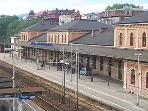 Bielsko-Biała Główna railway station is a railway station in Bielsko-Biała (Silesian Voivodeship), Poland. As of 2022, it is served by Polregio (local and InterRegio services), Koleje Śląskie (local services) and PKP Intercity (EIP, InterCity, and TLK services). The station serves as a southern terminus of Express Intercity Premuim (EIP) services, the highest speed rail services in Poland, connecting to Warsaw, as well as to Gdansk-Gdynia.