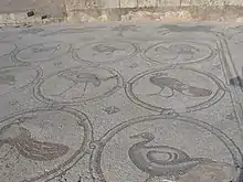 The Birds Mosaic is a Byzantine mosaic floor discovered in Caesarea Maritima, in modern Israel, in a Byzantine palace that was built around 600 AD. It is viewable in situ.
