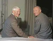 The Germans offered protection and passes to French middlemen.[56] The most well-known of these collaborators included Georges Delfanne, known under the pseudonym of "Masuy", and Henri Lafont, head of the gang at rue Lauriston, which became known as the Carlingue. Another notable collaborator was Frédéric Martin, known by the pseudonym Rudy von Mérode, who with the help of the Devisenschutzkommando, seized gold from traffickers who used the black market on pain of arrest and managed to collect over four tons.[57] They also used established merchants, competent opportunists who built fortunes, such as Joseph Joanovici in scrap metal or Michel Szkolnikoff in textiles.[58] [59][60][55]