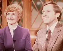 ![]() Bonnie with her husband on the set of Lutheran Vespers. | |