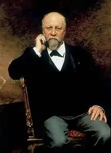 Paul Legrand (1840-1910) worked as the chief designer for the house of Boucheron from 1863-1867, and again 1871-1892.[1] He is credited with the idea of combining pearls with diamond rondelles, first seen in Boucheron products in 1889. The "rondelle" cut of diamonds was pioneered by Bordinckx, who was also associated with Boucheron.[2] While Legrand was head designer, in 1879, Boucheron developed a clasp-less necklace, which was part of its show which won a Grand Prix for Outstanding Innovation in a Jewellery Collection at the 1889 World's Fair.[3] Legrand was also influential in the design of the "Plume de Paon" (Peacock's Feather) design, which has featured in Boucheron collections since Legrand and Frédéric Boucheron created it in 1866.[3] It featured in the Point d'Interrogation necklace, which was bought by Grand Duke Alexei Alexandrovich Romanov.[3] This necklace was also featured in the World's Fair-winning collection.[3]