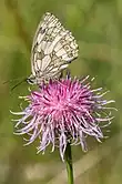 The chalk downland of Box Hill provides a habitat for a wide range of plant species, which in turn support a varied population of insect species. The alkaline soils are thin and nutrient poor, which prevents deeper-rooted lush grasses (with a high water demand) from dominating. Each square metre of chalk downland may support up to 40 different species.[93][94]