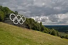 An estimated 850,000 people visit Box Hill each year.[2] The National Trust visitors' centre provides both a cafeteria and gift shop, and panoramic views of the western Weald may be enjoyed from the North Downs Way, a long-distance footpath that runs along the south-facing scarp slope. Box Hill featured prominently on the route of the 2012 Summer Olympics cycling road race events.[6]