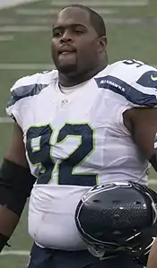 Mebane was selected by the Seattle Seahawks in the third round, 85th overall of the 2007 NFL Draft, and on July 24, he signed a four-year contract.[3] In his rookie season, he played all 16 games and recorded 29 tackles including two sacks. 2008 was a promising year for Mebane as he again played all 16 games and recorded 39 tackles, 5.5 sacks, and 2 forced fumbles. With the departure of Rocky Bernard, Mebane was expected to make a big impact for the Seahawks in 2009 in which he started 15 games and recorded 49 tackles and 1.5 sacks. For the 2010 season Mebane started the first four games but suffered a calf injury and was forced to sit out the next four games. In the first four games, he had 8 tackles and 1 sack.