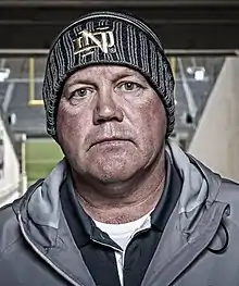 Brian Keith Kelly (born October 25, 1961) is an American college football coach. He is the head football coach at Louisiana State University (LSU), a position he has held since the 2022 season. Kelly served as the head football coach at Grand Valley State University from 1991 to 2003, Central Michigan University from 2004 to 2006, the University of Cincinnati from 2006 to 2009, and the University of Notre Dame from 2010 to 2021. He led the Grand Valley State Lakers to consecutive NCAA Division II Football Championships in 2002 and 2003. Kelly's 2012 Notre Dame team reached the 2013 BCS National Championship Game, while his 2018 and 2020 teams made appearances in the College Football Playoff.