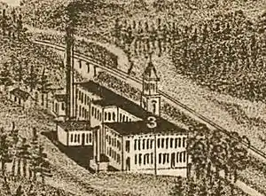 Brookside Mills was organized in November 1885, with $150,000 in initial capital. The following year, the company erected its two-story factory along Second Creek, on what was then the city's northwest periphery.[5] The factory was initially 78 feet (24 m) by 210 feet (64 m), and contained 6,000 spindles and 176 looms. W. R. Tuttle, who had helped establish the Knoxville Iron Company in the late 1860s, was chosen as Brookside's first president.[5]