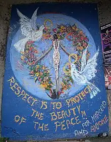 In 1993, Dutot was deported for overstaying his visa,[3] but returned five years later. During this time, unbeknown to him, other artists maintained the spirit of the artwork. Since his return, Dutot has regularly updated the wall with new themes and messages.[2]