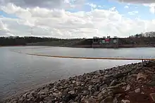 The dam is made of earth and concrete,[5] supplemented by three saddle dikes,[1] and was built to provide a water source for the Atlanta area, power homes, and prevent flooding of the Chattahoochee River.[6][7]