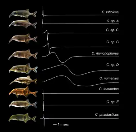 - Lamanna F, Kirschbaum F, Ernst AR, Feulner PG, Mamonekene V, Paul C, Tiedemann R (2016). "Species delimitation and phylogenetic relationships in a genus of African weakly-electric fishes (Osteoglossiformes, Mormyridae, Campylomormyrus)". Molecular Phylogenetics and Evolution. 101: 8–18. doi:10.1016/j.ympev.2016.04.035. PMID 27143239.