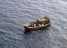 On 15 April 2006, HSL-47 helicopters and the destroyer Russell provided aid to a fishing vessel in distress (pictured) while operating in the South China Sea.[24]
