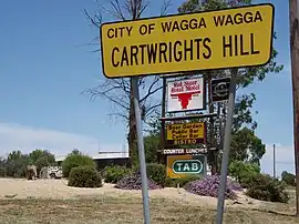 ![]() Signage relating to the suburb of Cartwrights Hill | |||||||||||||||