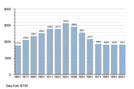 - "Superficie di Comuni Province e Regioni italiane al 9 ottobre 2011". Italian National Institute of Statistics. Retrieved 16 March 2019.
