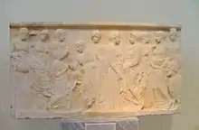 A mortal son of Cephissus was Eteocles by Euippe, daughter of Leucon, son of Athamas. This Euippe later on became the wife of King Andreus of Orchomenus and Eteocles inherited Andreus' throne.[6] Eteocles or Eteoclus, son of Cephissus, was confirmed from Hesiod's and Pindar's accounts.[7] He was the first made offering to the Charites by the side of the river Cephissus.