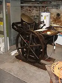 Chandler & Price was founded in 1881 in Cleveland, Ohio, by Harrison T. Chandler and William H. Price. They manufactured machinery for printers including a series of hand-fed platen jobbing presses, as well as an automatic feeder for these presses (the Rice Feeder), paper cutters, book presses, and assorted equipment. Despite dominating the industry in the 1930s, by the 1950s the offset printing industry had eclipsed the world of movable type printing, and only Chandler & Price and Brandtjen and Kluge continued to make open platen (Gordon) presses. Chandler & Price ceased production of presses in 1964.