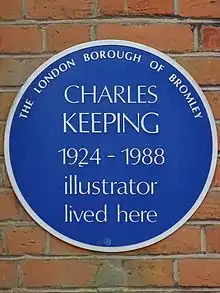 Charles William James Keeping (22 September 1924 – 16 May 1988) was an English illustrator, children's book author and lithographer. He made the illustrations for Rosemary Sutcliff's historical novels for children, and he created more than twenty picture books. He also illustrated the complete works of Charles Dickens for the Folio Society.