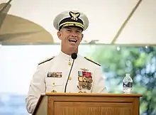 Ray's previous Flag Assignment was as the Pacific Area Commander. Prior to that he held flag assignments as the Deputy Pacific Area Commander, the Fourteenth Coast Guard District Commander, service with U.S. Forces Iraq as Director of the Iraq Training and Advisory Mission for the Ministry of the Interior, and as the military advisor to the Secretary of the Department of Homeland Security.[2] He has recently come under scrutiny for allegedly covering up an investigation into rape and sexual assault in the Coast Guard Academy.[6] On August 18, 2023, Admiral Ray stepped down as Tyler Chair in Leadership at the Loy Institute at the Coast Guard Academy "for the good of the Service and the good of the Academy."[7][8]
